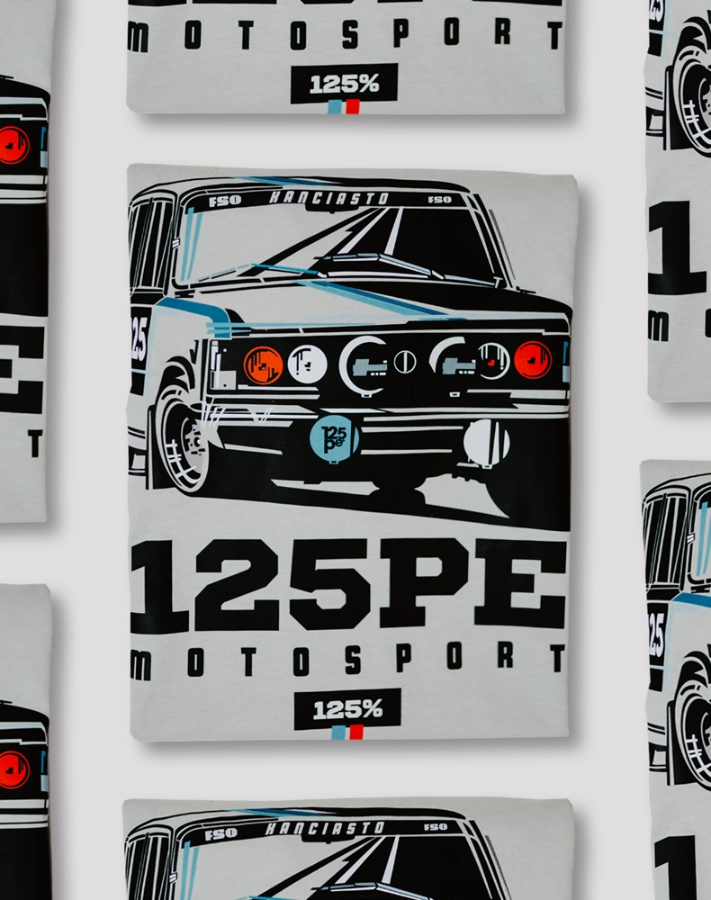 Produkt dla fanów Fiata 125p, klasycznej motoryzacji i stylu retro. Dla ludzi, którzy byli, są lub chcą być częścią tej historii. Dla tych, którzy nie noszą przypadkowych rzeczy. Fiat 125p to symbol epoki, który do dziś budzi emocje wśród fanów motoryzacji. W wersji motorsportowej zyskuje bardziej agresywny, dynamiczny charakter, a ten projekt jest jego współczesną interpretacją – energią klasyki przeniesioną na codzienny styl.